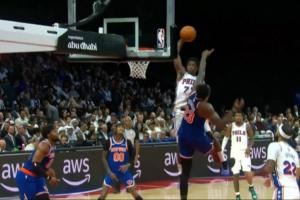 蹦得真高😲76人探花埃奇库姆起飞 隔扣米切罗没成功但造成犯规